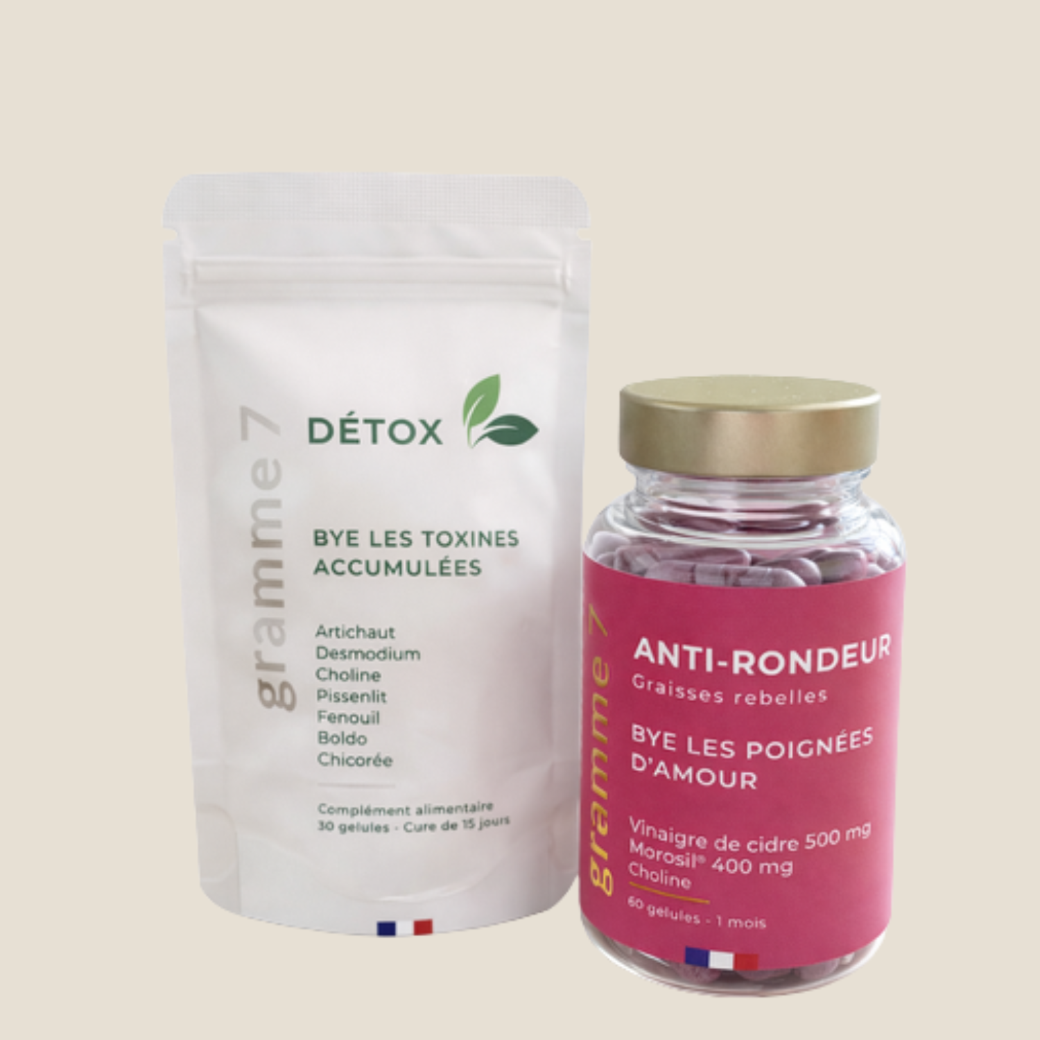 Le Programme Minceur « Détox + Anti-rondeur » associe deux formules complémentaires pour aider l’organisme à éliminer les toxines, relancer son fonctionnement naturel pour brûler la masse grasse sur le long terme.